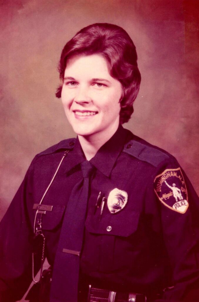 Janice proudly served her community with the Birmingham Police Department, retiring as a Sergeant in 1986 after a long and dedicated career. She was especially proud of being the 13th female officer hired in 1972. Over the years, she served in a variety of roles within the department, including Patrol Officer, Public Relations, Crisis Management, and Evidence Technician; a position she particularly enjoyed.